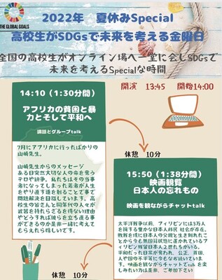 現役、高校生、大学生等学生を中心に「SDGs17パートナーシップで目標を達成しよう」の呼びかけのもとに問題解決のヒントや今日からできる事を日々の暮らしを丁寧に大切にできる時間をつくりだします。