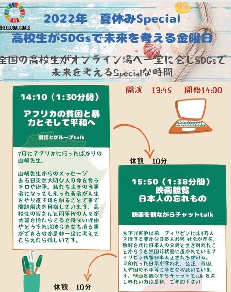 SDGsを掲げる、17のテーマ169のターゲットを中心に立ち上げからこれからの夢を現役大学生のオンラインセミナーの企画中。