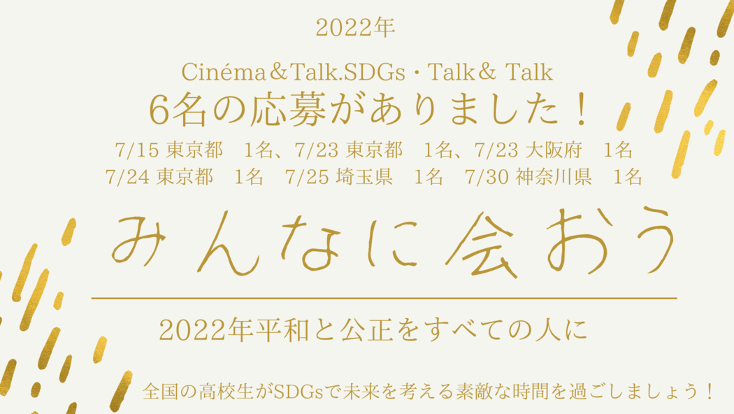 cinéma&talk 高校生限定 高校生がSDGsで未来をかんがえる金曜日はSDGsについて高校同士が未来を考える場。一人一人の参加がないと成立しません
