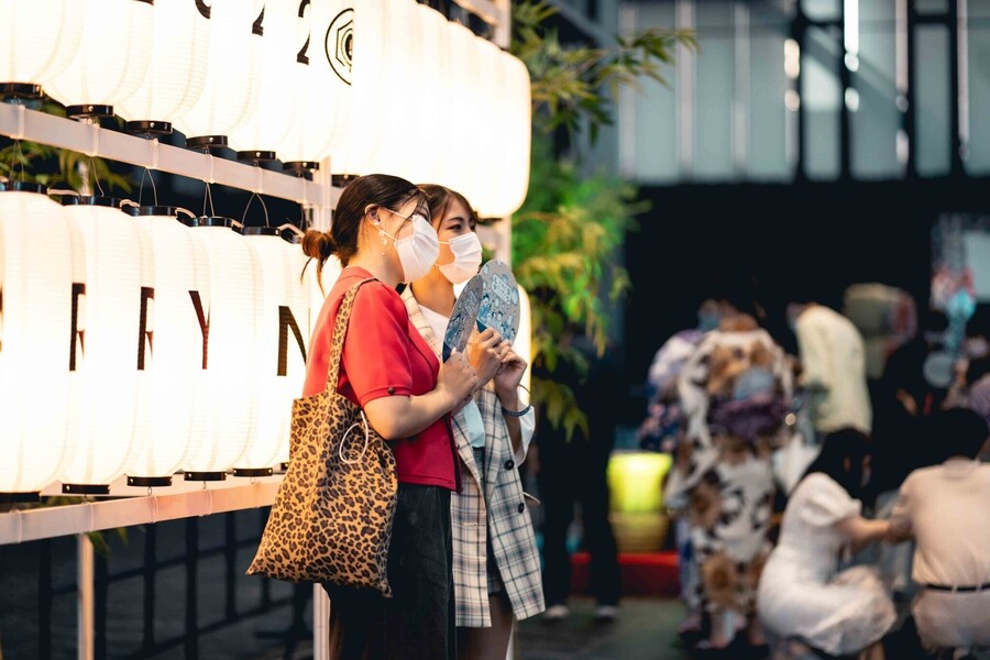 3日間で約6,000個のランタンが西日本総合展示場を彩り、その他に夏らしいフードや和楽器のステージ・縁日が祭りを盛り上げた。