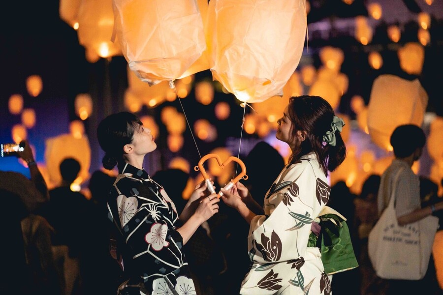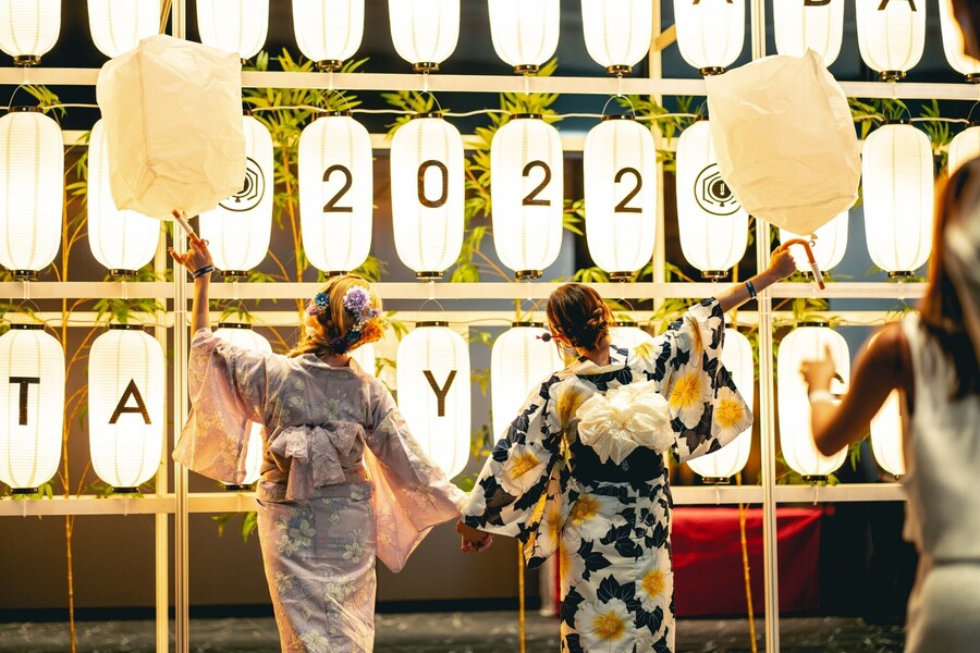 新宿住友ビル 三角広場で1日1000人規模の七夕スカイランタン祭り2022を開催。