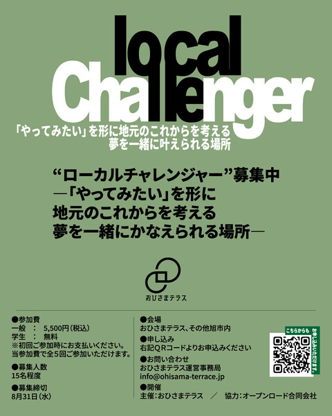 - 「やってみたい!」を形にする“ローカルチャレンジャー”育成プログラム参加者募集!