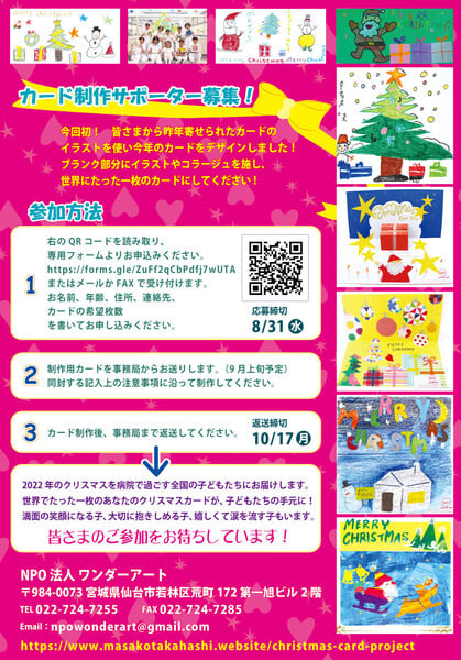 個人でのご参加はもちろん、お友だちやご家族、お子さまとの参加も大歓迎です!病院でカードを手にした子どもたち、ご家族、職員の皆さまからは、大変多くの感激の言葉と反響が寄せられています。