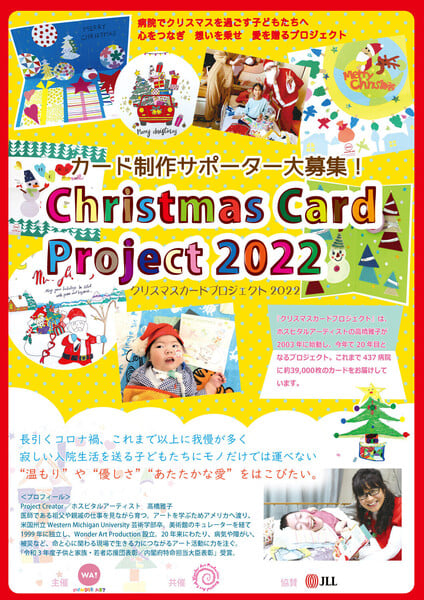 クリスマスを病院で過ごす子どもたちへカードを贈る『クリスマスカードプロジェクト』にて、制作サポーターを募集します!20年目を迎えたホスピタルアーティスト高橋雅子による本プロジェクトは、病と共に過ごす場所「病院」にて、ものだけでは運べない人の「温もり」や「優しさ」をクリスマスカードに載せて、病と闘う子どもたちに、あたたかな愛を贈るプロジェクトです。