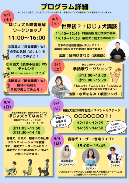 ∟補助犬がいても、サポートが必要なことがあります。会場内の移動などをサポートしていただきます。