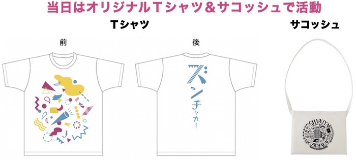 スタッフを担う皆さんには、渋谷ズンチャカ!オリジナルスタッフTシャツを支給します。当日の集合時にお配りしますので、着替えやすい服装でお越しください。着替えてからそれぞれの活動エリアに分かれていきます。またサコッシュもお渡しします♪(Tシャツのサイズはエントリーフォームからお選びいただけます)