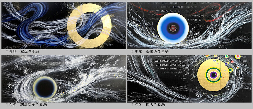 大和四神(室生寺、金峯山寺、朝護孫子寺、西大寺)へ1000年先に想いを込めて『四隻之屏風』を奉納するにあたり、その実物の展示と制作アーティストの講演、四ヶ寺の管長による対談など開催します。