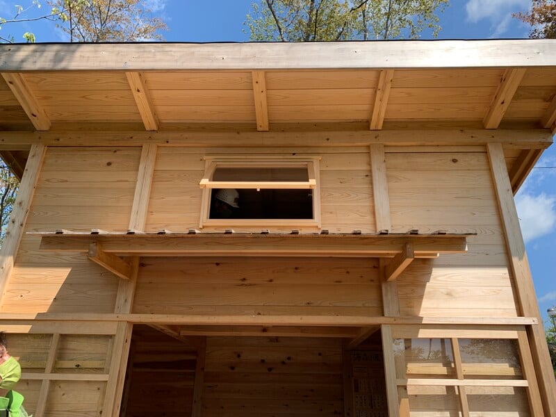 ●減災体験伝承プログラム用の炊事場にセルフビルド掘立小屋ボランティア500名と2年間かけて