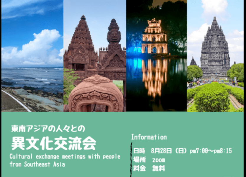 日本人と様々な国から集まった参加者との異文化交流会をオンラインで行います。国際交流に興味のある学生の皆さん、ぜひご参加ください!
