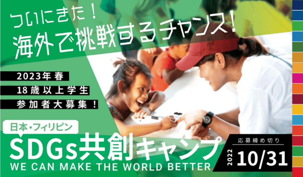 このたび、LOOBが2023年春にフィリピンで開催する『日本・フィリピンSDGs共創キャンプ~We can make the world better~』というプログラムに向け、参加者12名を募集いたします。