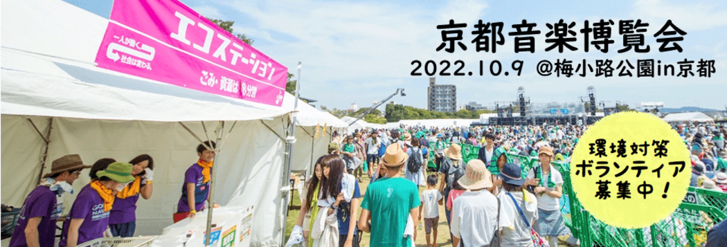 - 京都のフェスである「 京都音楽博覧会」が3年ぶりに開催されます!iPledge・ごみゼロナビゲーションでは今年も一緒に活動するボランティアを募集します!来場者ひとりひとりがごみの削減を考えたり、自然環境に目を向けてみる、そのきっかけを作るのが私たちボランティアです。自然にも人にもやさしいフェスをつくる。そんな一員として一緒に活動しませんか?参加お待ちしています!