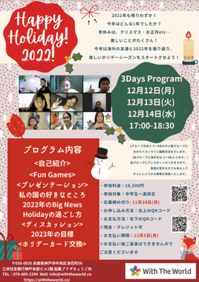 - 【12/5〆切】Happy Holiday!オンライン国際交流クリスマスイベント