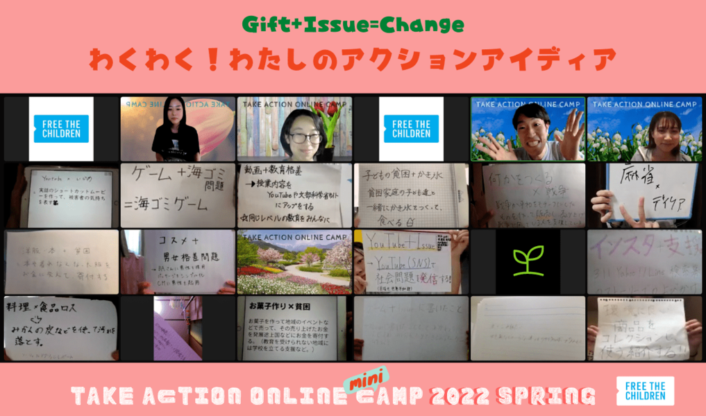 1995年、貧困や搾取から子どもを解放することを目的に、カナダのクレイグ・キールバーガー(当時12歳)によって設立された「Free The Children」の理念に共感し、1999年に日本で活動を始めました。開発途上国での国際協力活動と並行し、日本の子どもや若者が国内外の問題に取り組み、変化を起こす「チェンジメーカー」になれるよう援助しています。現在、教育機関などへの出前授業、講演・教材販売、貸出・フェアトレード商品販売・書き損じ葉書の回収・支援先の子どもたちとの文通プログラム・国内外でのワークキャンプ、ソーシャルアクション(社会貢献活動)を起こした子ども・若者をエンパワーするイベント「Change Makers Fes」の開催などを主な事業としており、活動内容は公民・英語教科書などの学校教材に掲載されています。