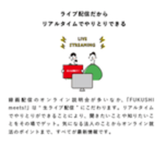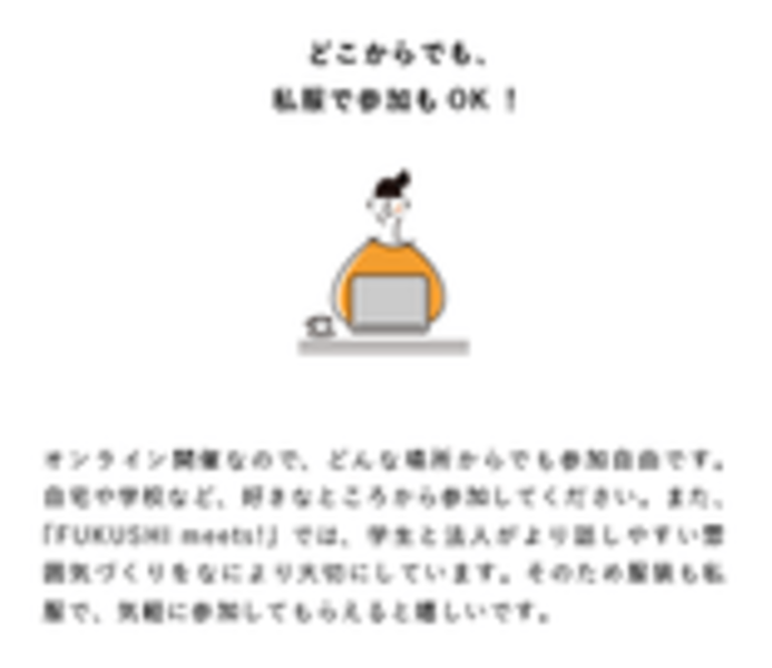 FUKUSHI meets!の活用方法や就活のポイントについてお話します。緊張をほぐすためにも、オリエンテーションから気軽に参加してみましょう。