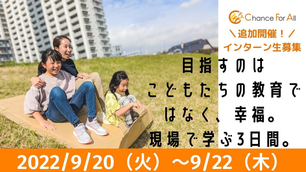 - 【追加開催!!】目指すのはこどもたちの教育ではなく、幸福。3日間の教育インターン