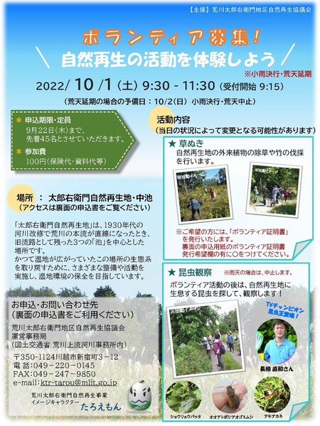 荒川太郎右衛門地区自然再生協議会この募集の受入団体「荒川太郎右衛門地区自然再生協議会」をフォローして、
