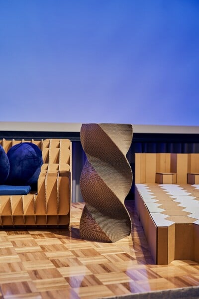 ダンボールだからこそできる曲線美や積層構造による意外な強靭さは強みです。