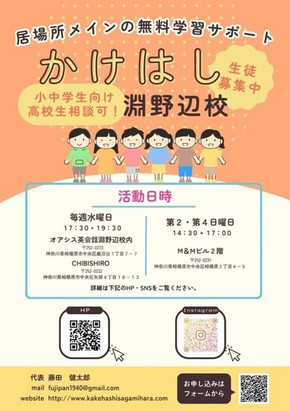 かけはし小中学生向け 居場所作り学習サポート 淵野辺 相模原学生ボランティア募集