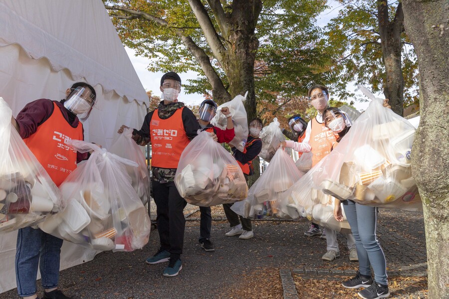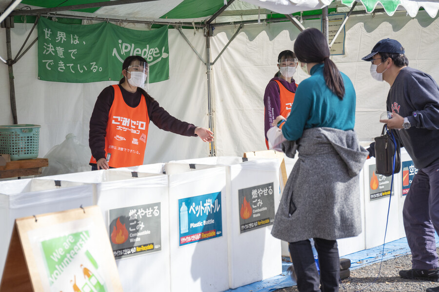 来場者が自分の手でごみ資源を分別できるようにする "ごみ資源の分別ナビゲート" や、ごみの根本削減に取り組む "リユースカップ・食器"の導入など、イベントの環境負荷を下げるための活動をボランティアと一緒に運営しています。