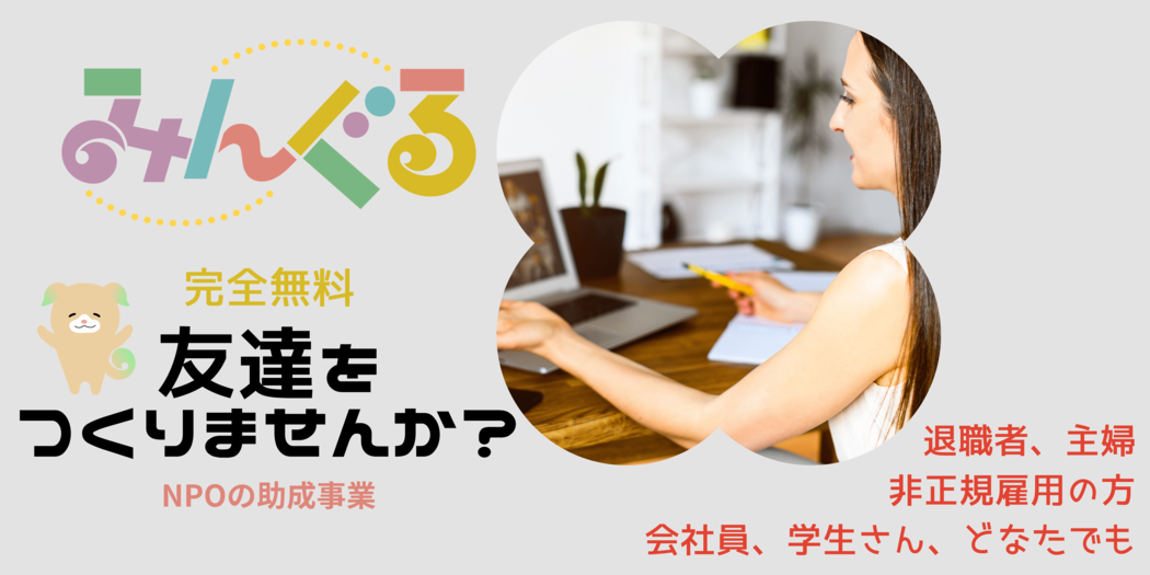 孤独を防ぐ無料の全国オンラインで友達づくり「みんぐる」 ~非正規雇用の方や退職された方、主婦、会社員など大歓迎の新しい仕組みを2022年11月より助成事業で始めました。温かいメンバーを募集しています。