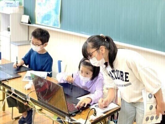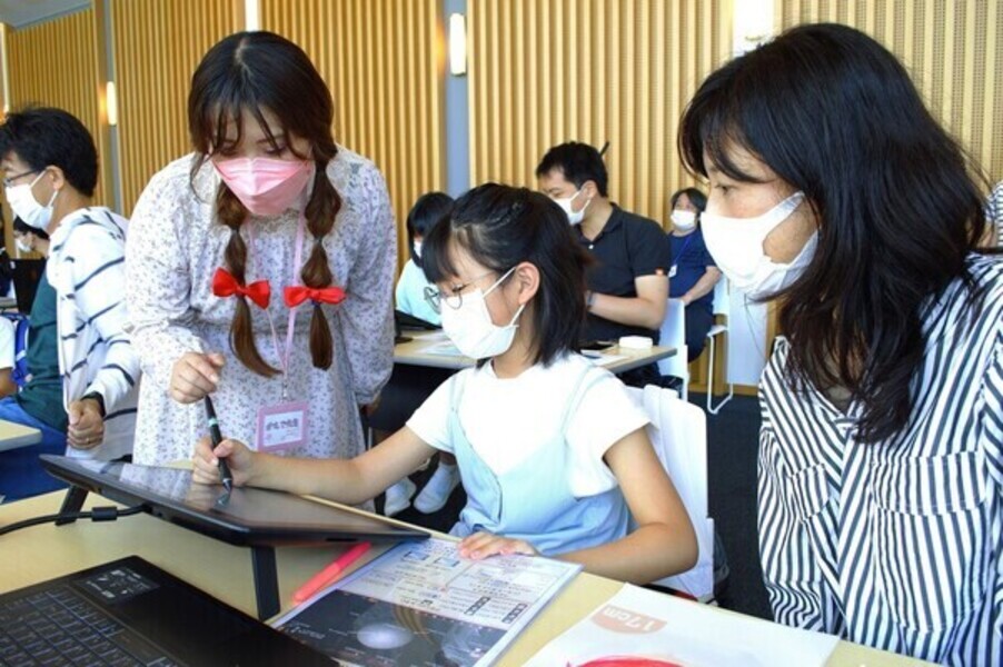 アシスタントスタッフの方にも、ペンタブレットの使い方とCG制作方法のレクチャーをお子様にして頂きます。