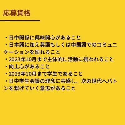 - ※お申し込みはホームページで「日中学生会議説明会」と検索するか、SNSからお願いします。