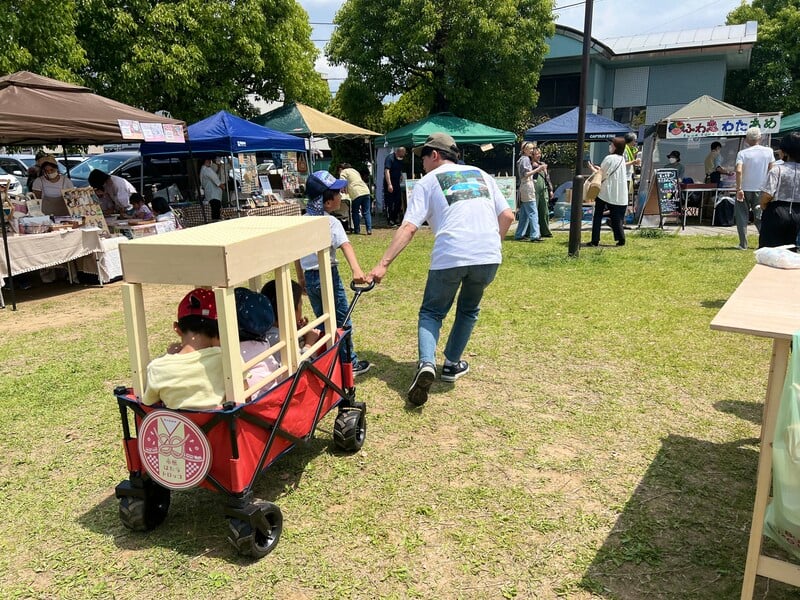 マルシェの運営のお手伝いをするだけではなく、当団体が出店者となって、飲食物を販売したり、子ども向けの遊びコーナーを出店したりすることもあります。もちろん、出店内容はメンバーで話し合ってアイデアを考えます。