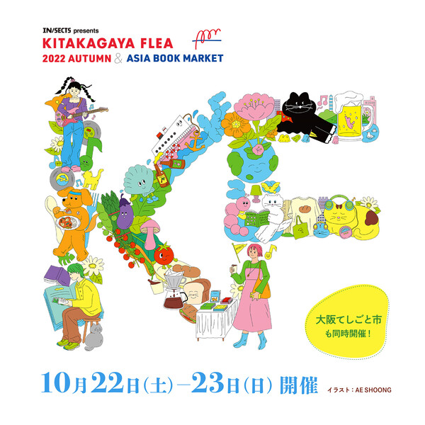 「KITAKAGAYA FLEA」は、大阪を拠点にローカル・カルチャーマガジン「IN/SECTS」を発行するLLCインセクツ主催のマーケットイベントです。これまで雑誌づくりを行う中で出会った、さまざまな生産者、そしてアート、デザインなどの表現、またものづくりに携わる作家、アーティストたちが一堂に会します。また同時開催する「ASIA BOOK MARKET」では、韓国、台湾、中国、香港の4地域からと、国内の独立系出版社や書店が集結します。トークショーやライブも開催予定です。