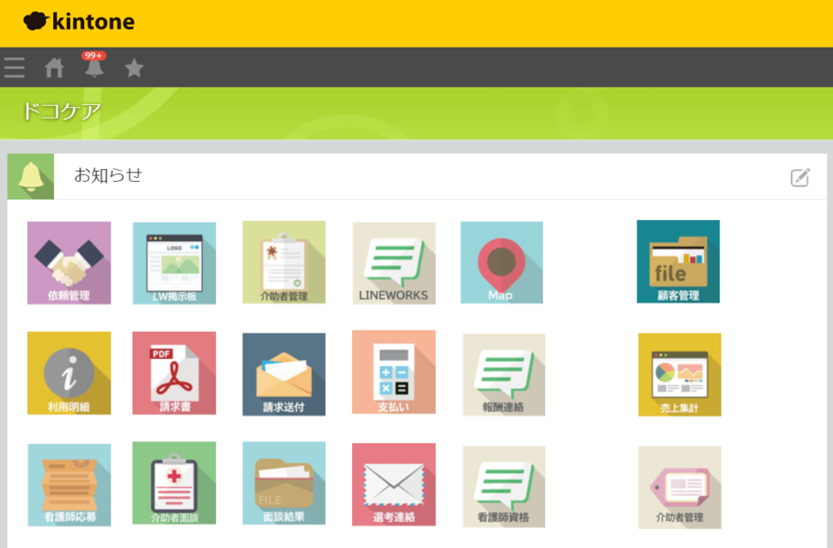 具体的にはDialPadで電話を受け、kintoneにて依頼を管理し、LINEWORKSで担い手とやりとりをし、googleFormで報告を受けるといったカタチです。