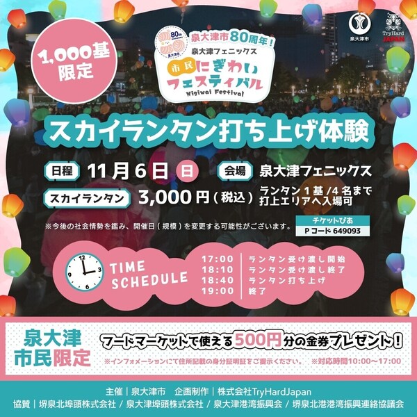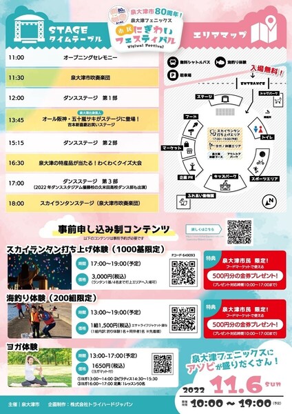 11月6日(日)株式会社トライハードジャパンは泉大津市市政80周年イベントを開催します♪