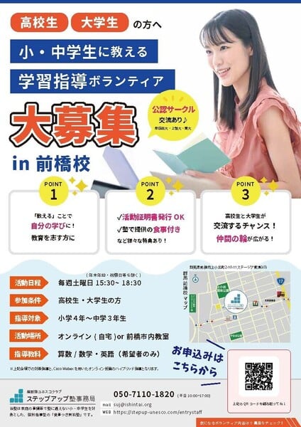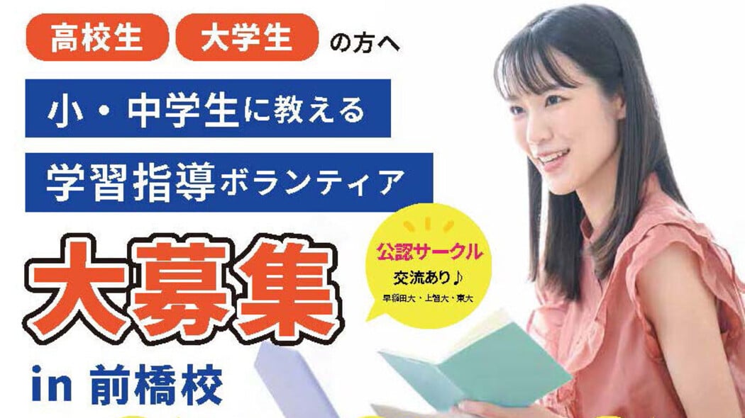 - 【群馬大学生・前橋在住高校生へ】小・中学生への学習支援ボランティア大募集!