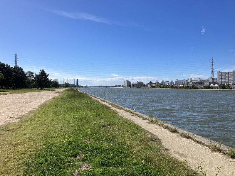 集合場所;阪神武庫川駅の東出口を出て、南すぐの河川へ降りた所が集合場所です。 |