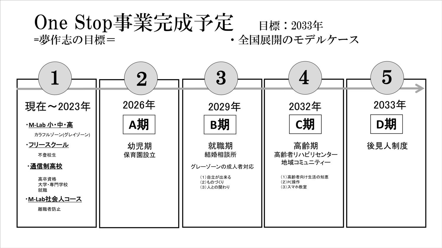 「生きづらさ」感じている、幼児期から高齢者までの相談・支援を夢作志一箇所で行える新規事業を展開予定。