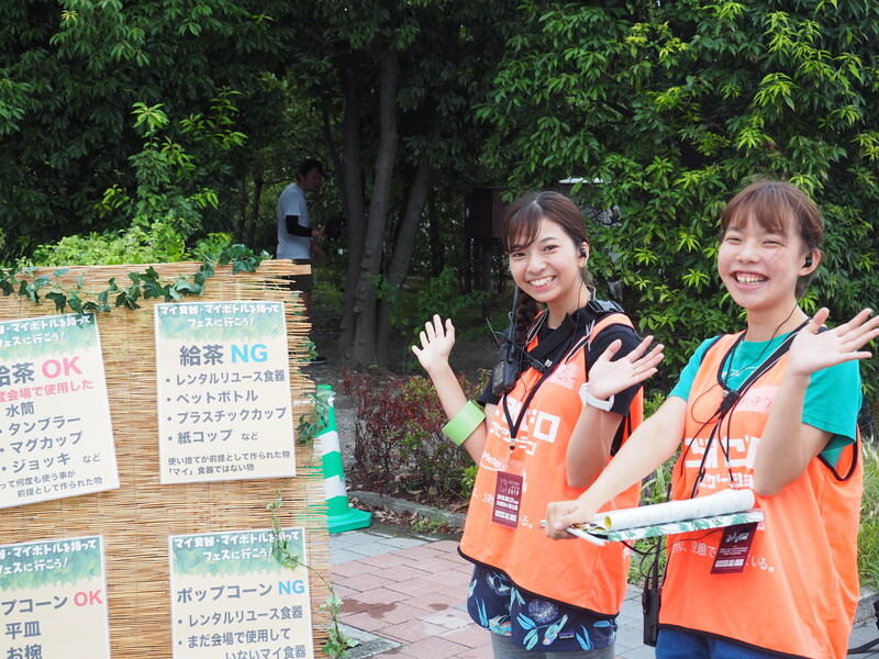 来場者が自分の手でごみ資源を分別できるようにする "ごみ資源の分別ナビゲート" や、ごみの根本削減に取り組む "リユースカップ・食器"の導入など、イベントの環境負荷を下げるための活動をボランティアと一緒に運営しています。