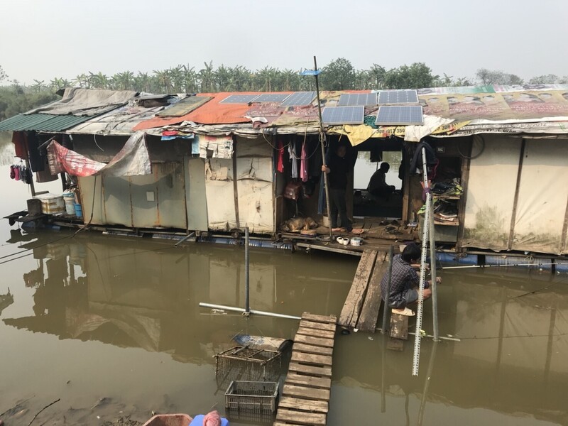 首都ハノイ。漁師村は紅河沿いに作った水上家屋の集合体で、漁師ではないが、そう呼ばれる。住民は農村から出てきて、近くの市場で働いて生計を立てるが生活は厳しい。 |