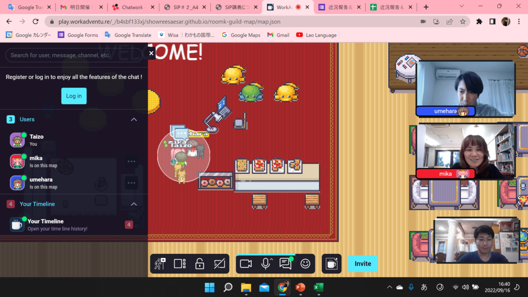 土・日18:00ー20:00(-21:00)のお好きな時間を選択して参加できるセッションでは、オンライン上で仲間たちとおしゃべりをしながらその週に動画で学んだことについてアイディアを交換!