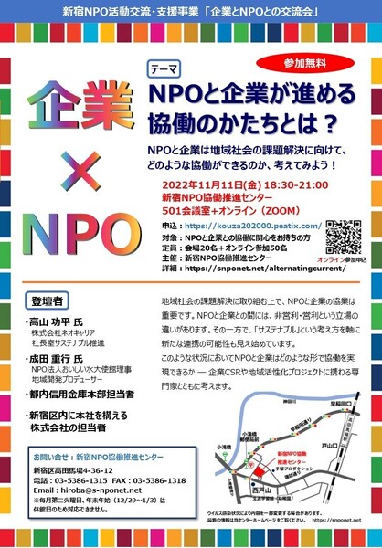 - 【企業とNPOの交流会のお知らせ】企業とNPOの協働、地域の課題解決を考える