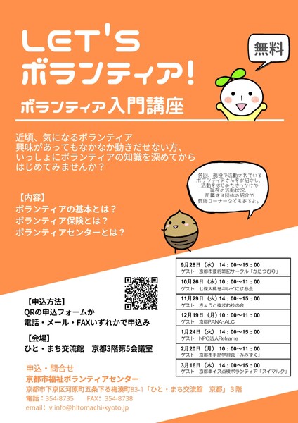 はじめての人集まれ!相談もできる!11/29(火)Let'sボランティア入門講座