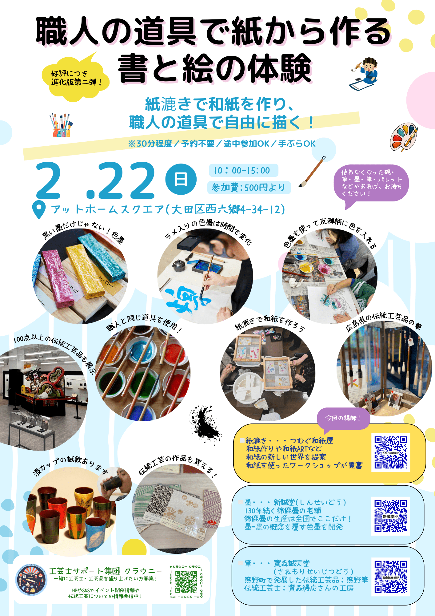 時間は、12:30-14:30 江戸からかみ体験は、事前予約制です。 小津和紙さんの「1日体験講座」のページをご確認ください!