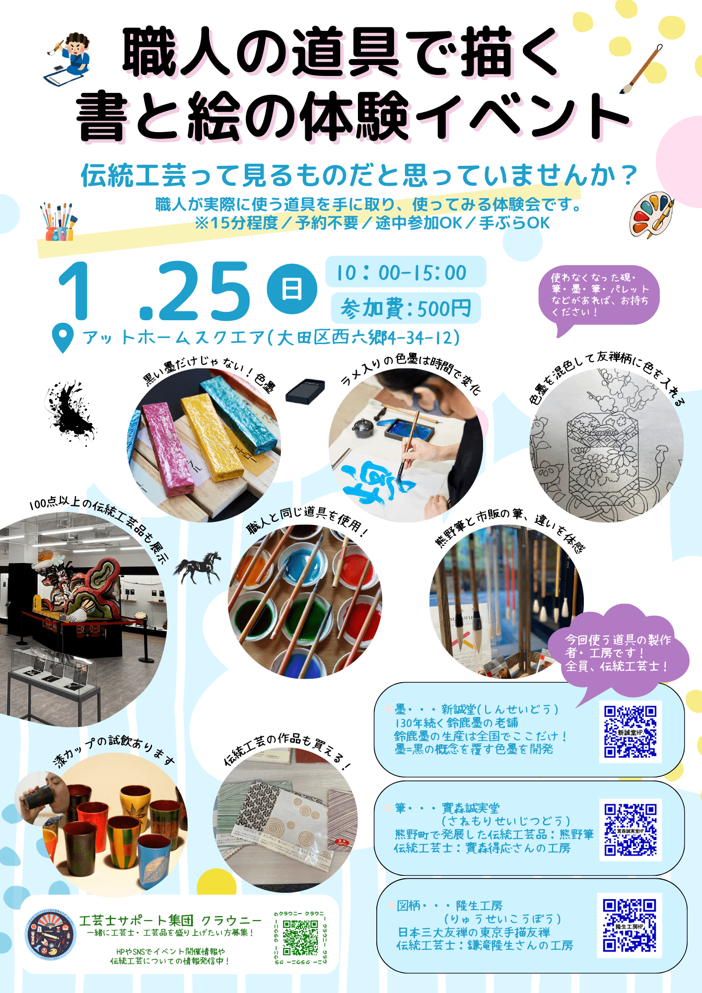 伝統工芸の道具を使って描く 書と絵の体験イベントの紹介