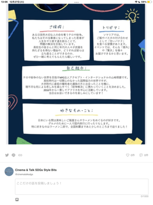 講演会前と後の1週間程度、様々なSDGsの専門家、経験者にチャットで疑問、質問が talk(対話)できる。