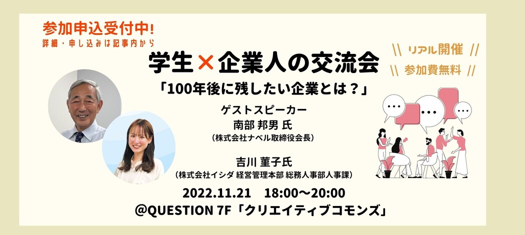 学生×企業人の交流会「100年後に残したい企業とは?」(リアル開催)