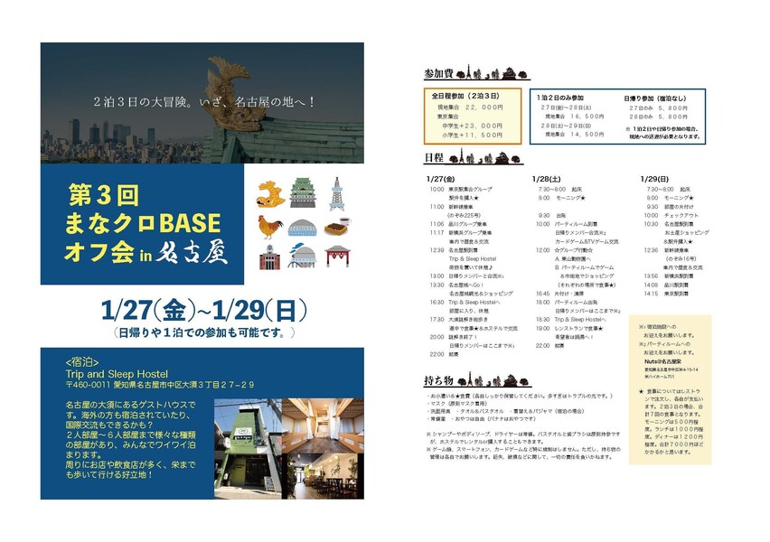 宿泊もできる方は、宿泊代と謝礼&食費として3000円支給させていただきます。