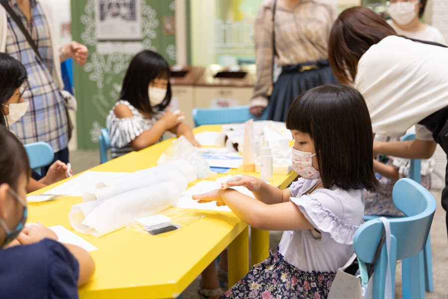 今回は絵本作家やおかし屋さん、お花屋さんなどに実際に教えてもらにったり、館内のお店でお仕事体験をしたりします👏
