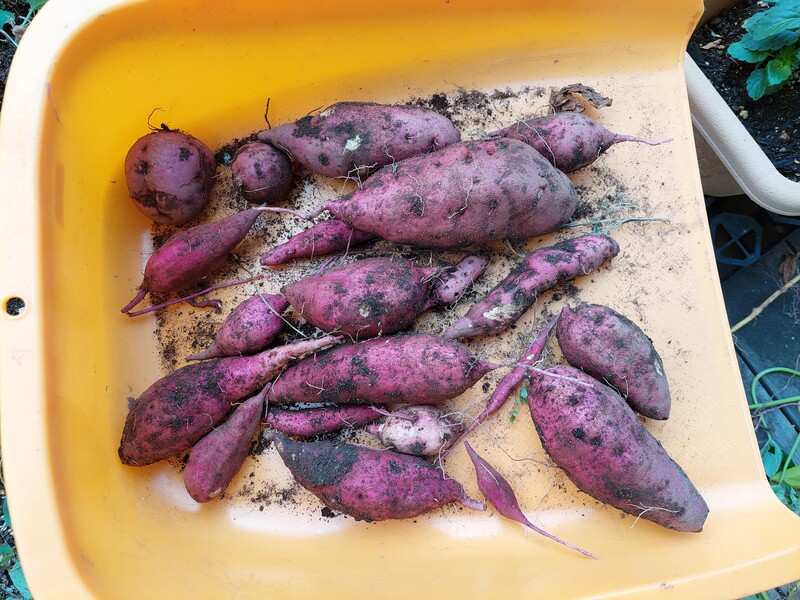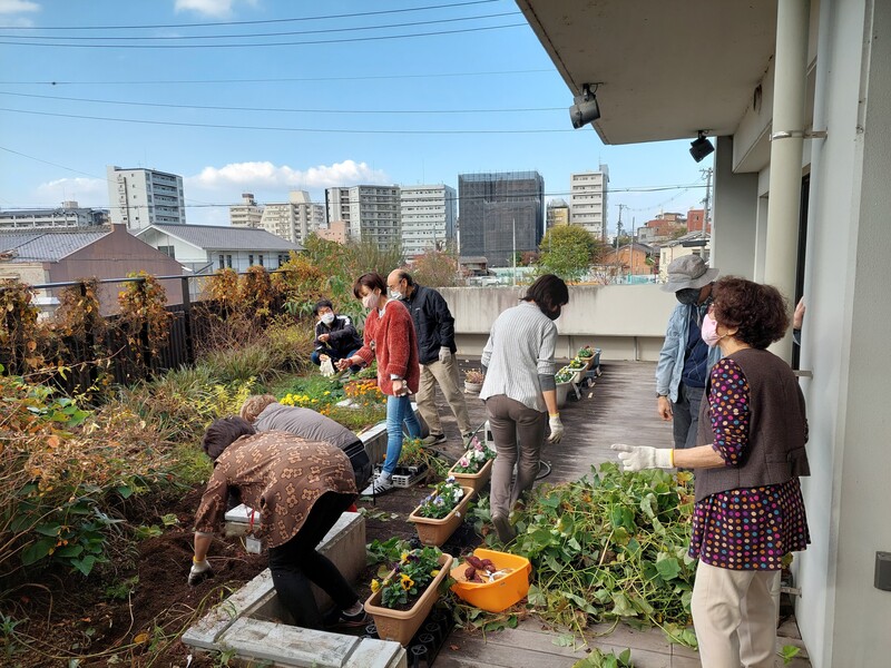 下京いきセン3階のテラスで地域の方と育てているさつまいもを収穫します🍠