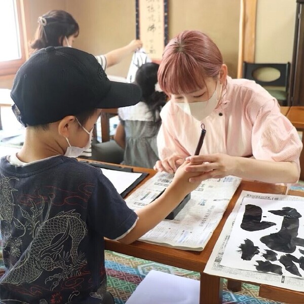 4歳から6年生を対象に、天王寺(大阪府)のお寺で無料で書道を教えています。