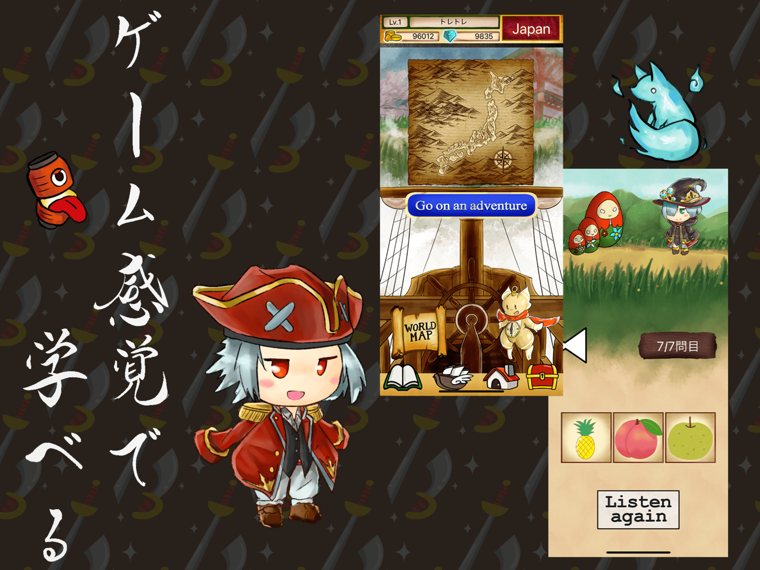 「Training Treasure」、通称トレトレは、英語学習アプリです。単語問題などをはじめとするさまざまな演習問題が搭載されています。 さらに、好きなジャンルを解くことができるプラクティスコース、AIによる解析を行う苦手克服コースなどがあり、 それぞれの人に合った学習方法を実現することができます。ゲーム感覚での学習が特徴的で、誰でも楽しめるようなストーリーや機能があり、 英語嫌いな人でも楽しめる内容になっています。