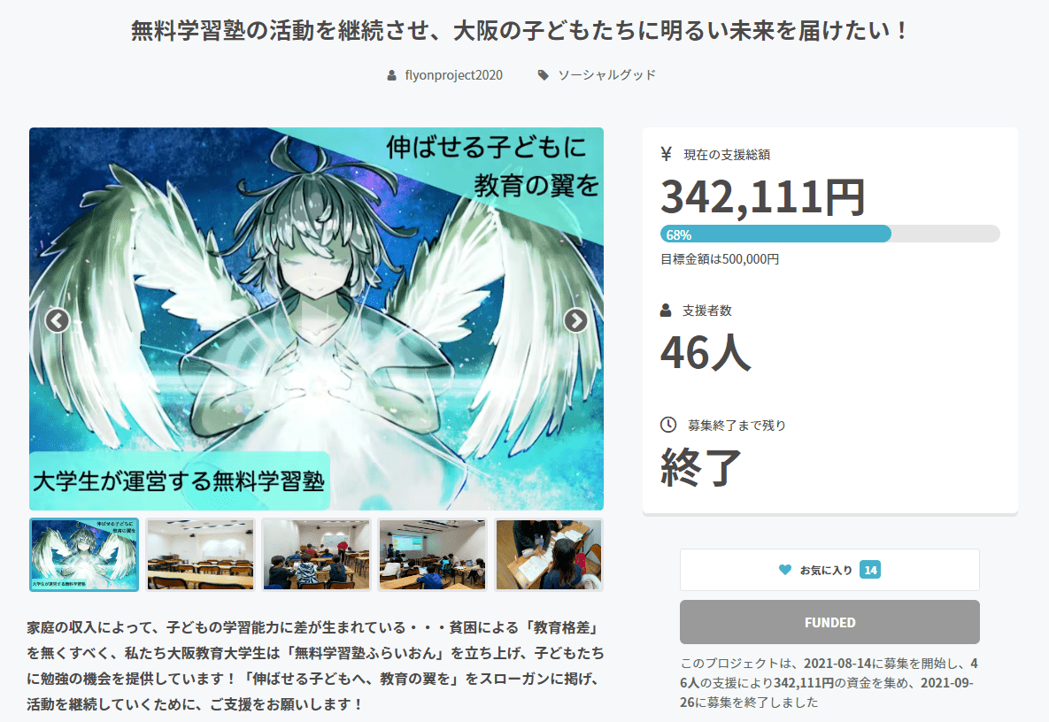 無料学習塾の活動を継続し、認知度を上げ、一人でも多くのこの活動を必要としている人に届けたい…!という思いで始めたクラウドファンディング。