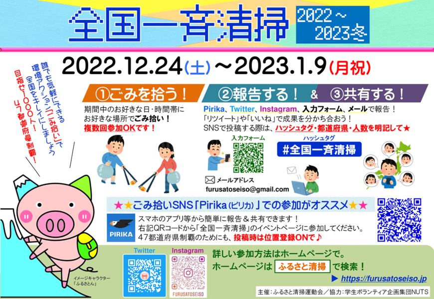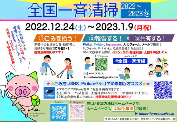 - ごみ拾いでふるさとをキレイに!『全国一斉清掃2022~2023冬』参加者募集中