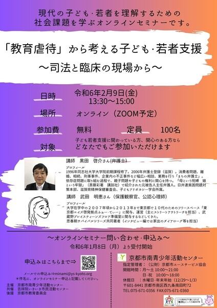 現代の子ども・若者を理解するためのオンラインセミナーです。
